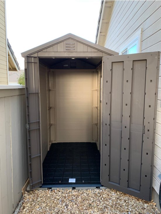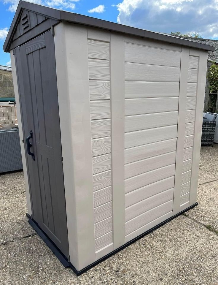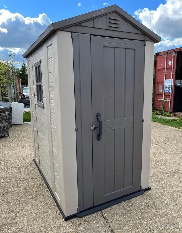 • Keter Factor 4x6 Outdoor Storage Shed | Shop Patio Furniture, Garden Tools, Bicycle Accessories, Beach Chairs or Lawnmowers | Taupe & Brown