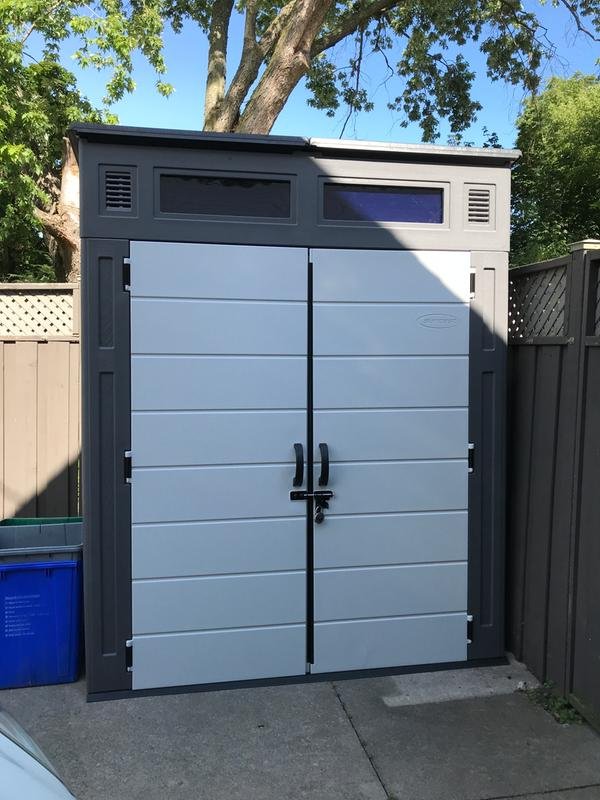 Bought this to replace the wood shed I've had for 30 years. Hopefully this will be the last plastic shed I buy. Decent size for all the gardening tools and lawn mower. The finish is excellent, just like wood. Glad it was delivered as the box was heavy. Haven't put it up yet, waiting for better weather. Instructions are good but the roof part seems complicated. We'll see how it goes. Well done, looking forward to erecting it. Whether we end up in divorce court or not is another story, haha. We're in our 70's so we'll take it slow.