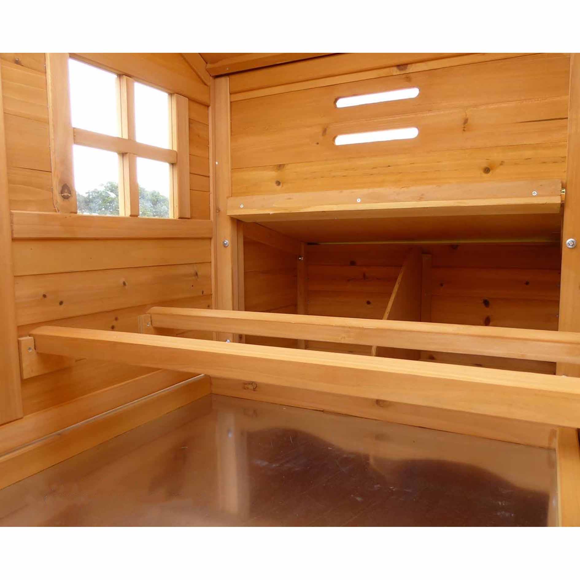 The nesting box can also be unbolted - a feature which allows you to conveniently access the internal housing area of the chicken house, making it quick and even easier for you to clean. We've increased the depth of the pull-out tray so any bedding you place in it won't easily spill out when it is removed.